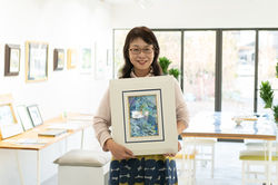 白い壁に並ぶ色とりどりの作品。窓から見える庭の木々。絵に触れることで色の魔法が自分だけの時間を作り出す。