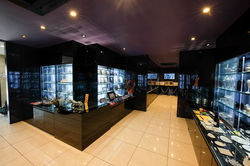 弟子丸さんは高校卒業後、薩摩切子を復活させた年に入社し薩摩切子の開発に携わり、2011年に霧島市国分に「美の匠 ガラス工房 弟子丸」を設立。 弟子丸さんは薩摩藩に仕えた武士の子孫で、時を超えて島津家が始めた薩摩切子に携わっているのもロマンがありますね。国分の工房は車いすでは見学できないので、「ART DESHIMARU」では、車いすでも楽しめるように考えて建てられたそうです。館内はとても広く、ゆっくり見学や買い物もでき、カット体験まで車いすで楽しめます。カット体験をしてみるとさらにその技術のすごさを実感できます。店内に入ると色鮮やかで綺麗な作品が並び、奥のスペースにもランプシェードやステンドグラスも飾ってあり幻想的です。ぜひ、薩摩切子の世界をご堪能下さい。